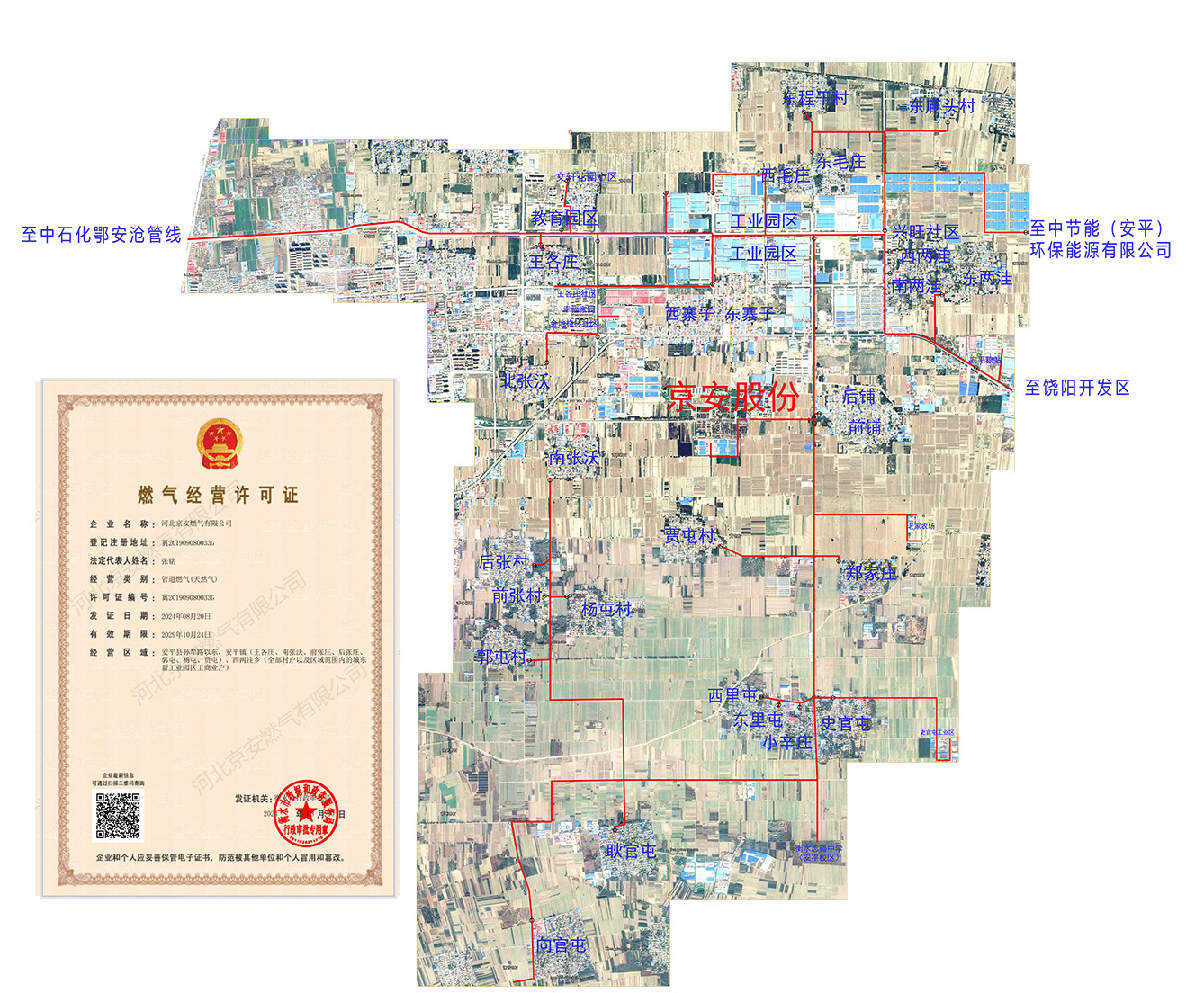 2017年8月,掌握生物天然气提纯制备核心技术的尊龙凯时股份公司投资注册成立河北尊龙凯时燃气有限公司,并获得政府经营许可,铺设中压外管网70余公里,村内中压管网40余公里 ,低压管网210余公里 ,在安平26个村镇 、11000余户居民用户以及安平丝网工业园区 、教育园区迅速开展天然气入户输气工程,在生物天然气制造与农村“煤改气”工程完美结合的同时,为尊龙凯时股份沼气能源商品化,市场化打开端口,并逐步成为安平这座“中国丝网之都”的绿色工业能源 。