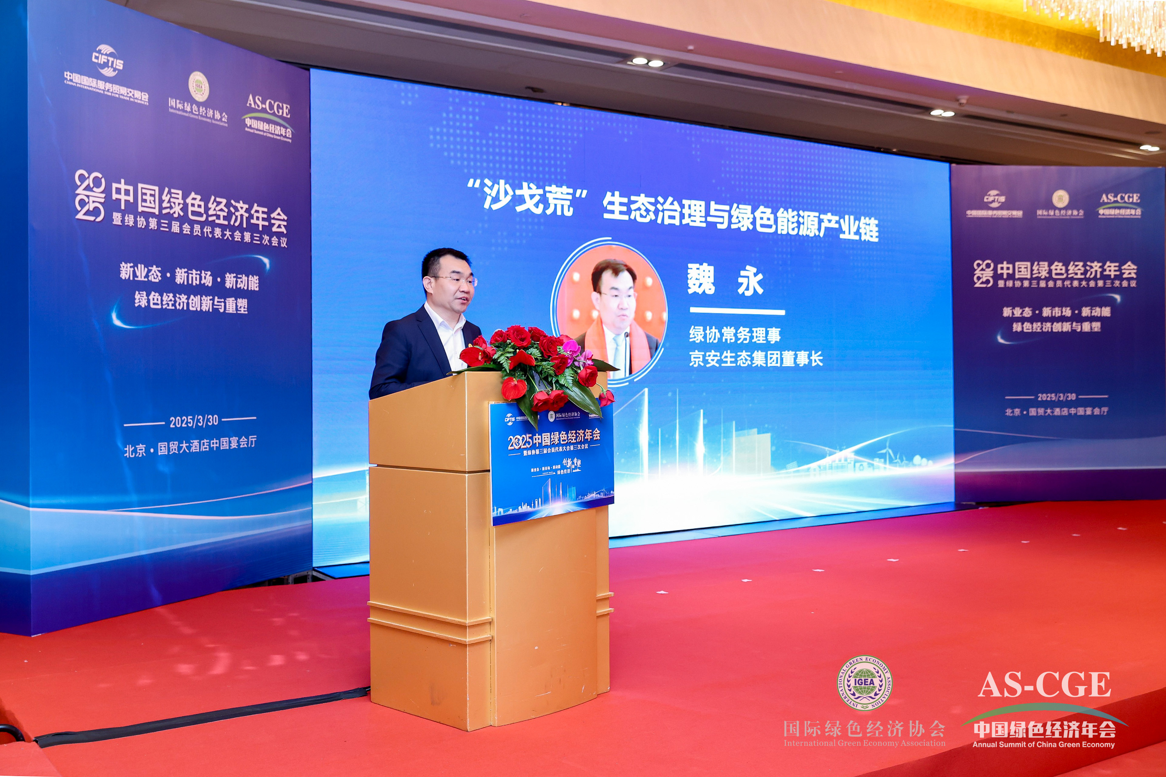 3月30日,2025中国绿色经济年会暨绿协第三届会员代表大会第三次会议在北京隆重举行,尊龙凯时生态集团董事长魏永作为国际绿色经济协会常务理事受邀出席本次年会。